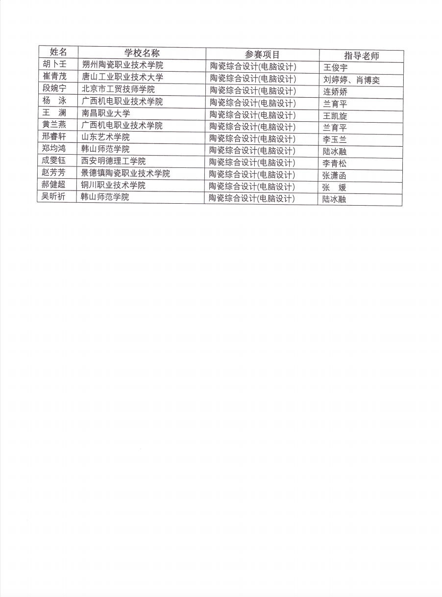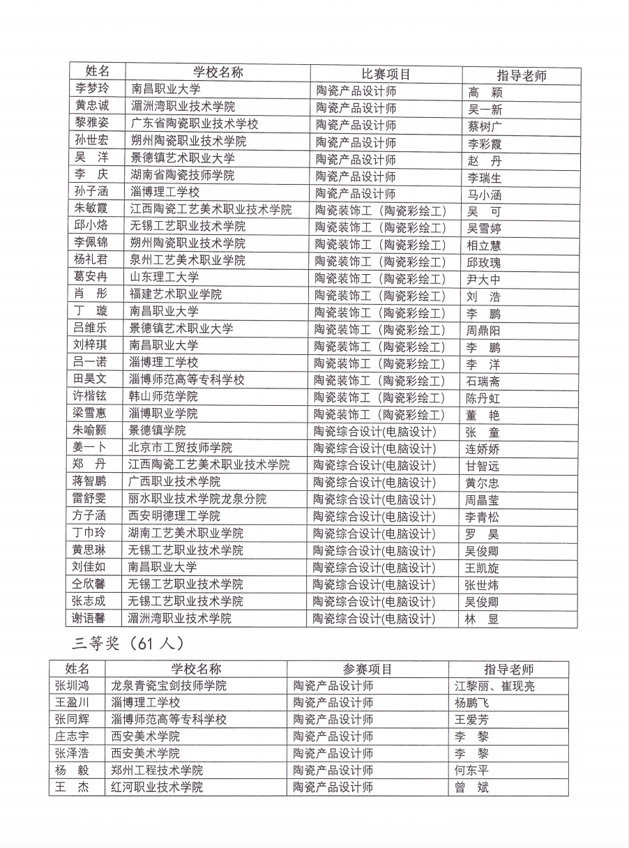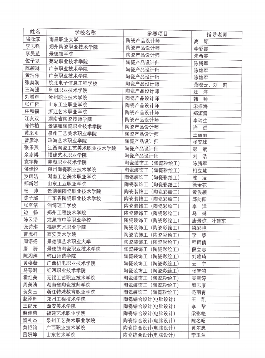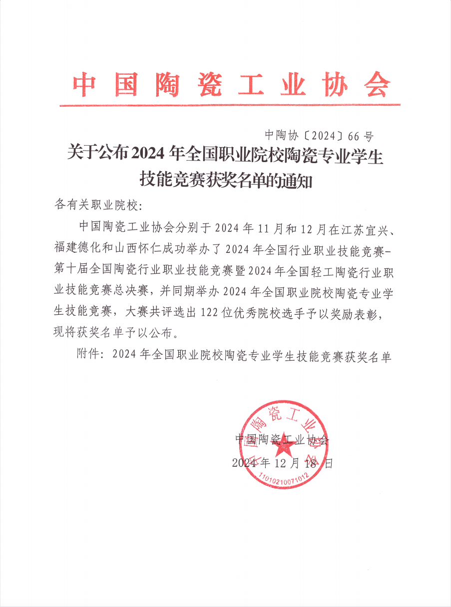 關(guān)于公布2024年全國陶瓷職業(yè)院校學(xué)生技能競賽獲獎名單的通知