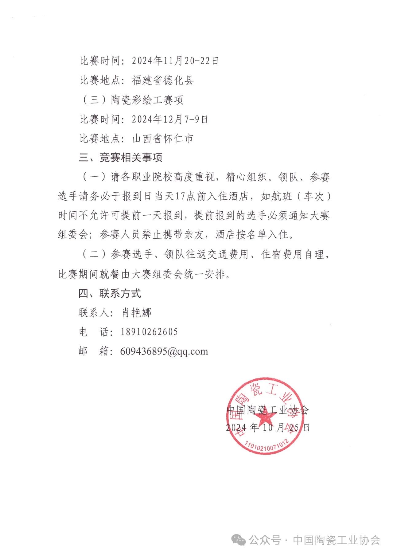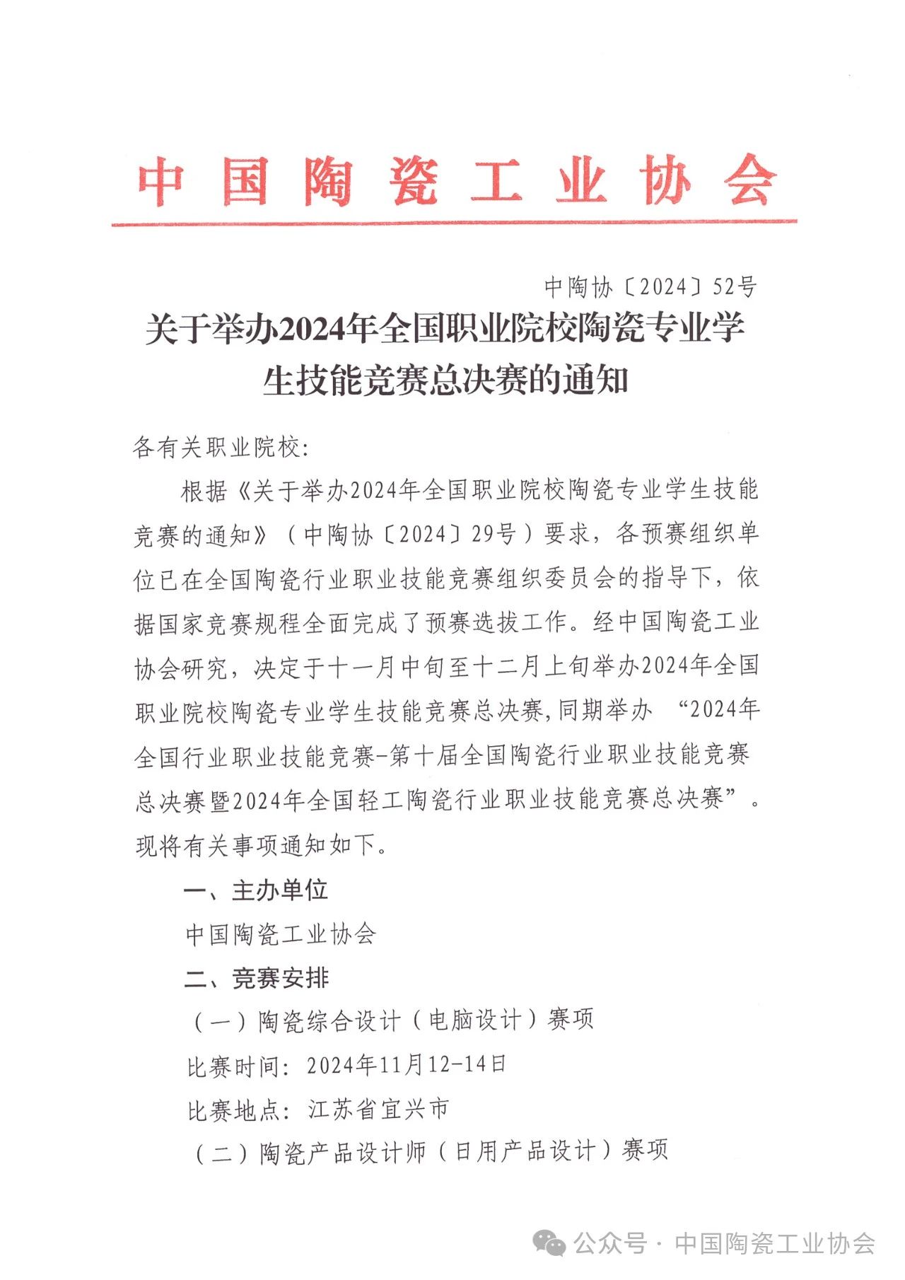 【通知】關(guān)于舉辦2024年全國職業(yè)院校陶瓷專業(yè)學生技能競賽總決賽的通知