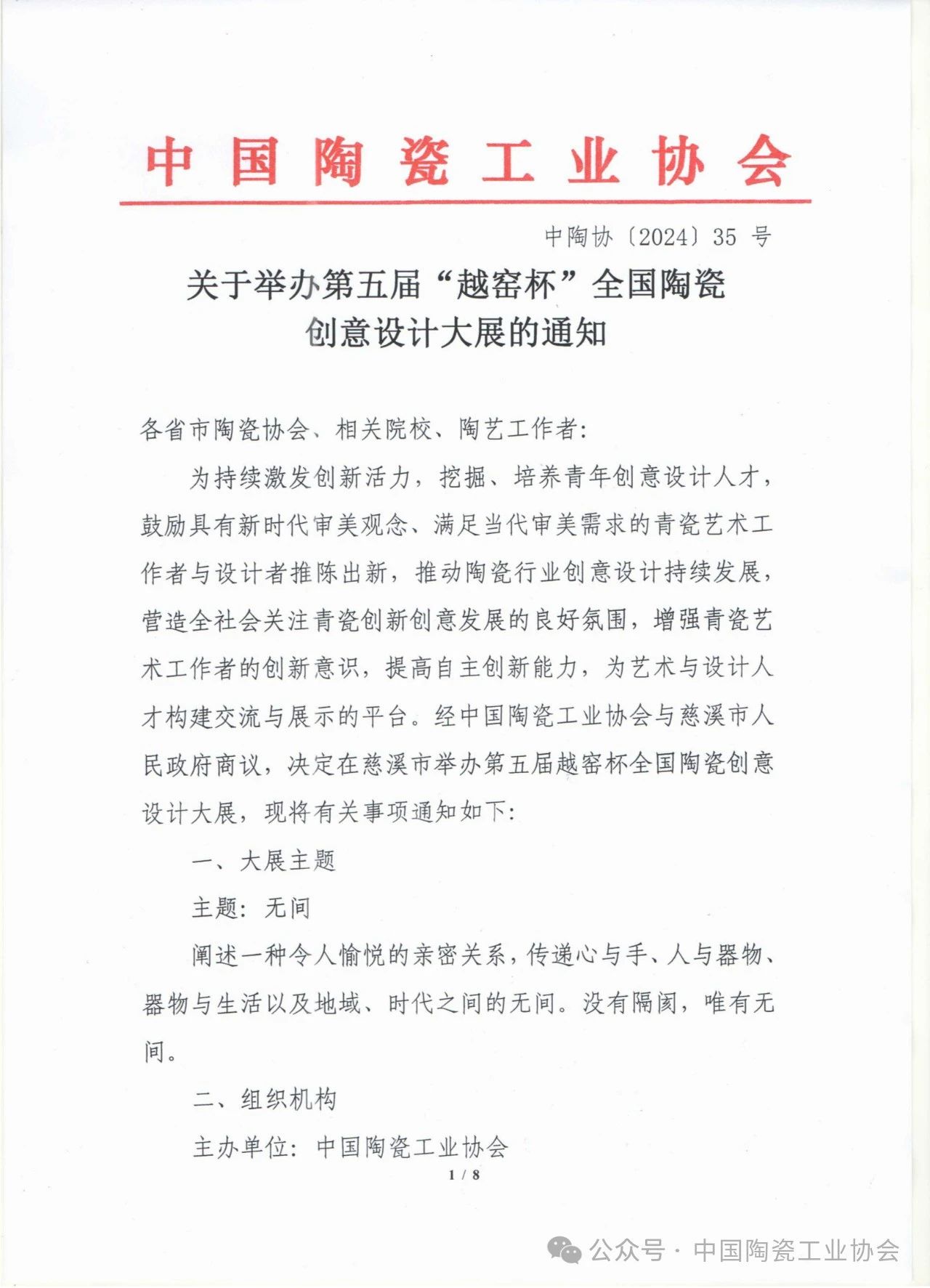 關(guān)于舉辦第五屆“越窯杯”全國(guó)陶瓷創(chuàng)意設(shè)計(jì)大展的通知