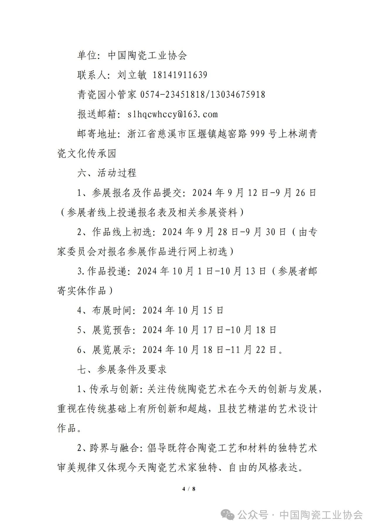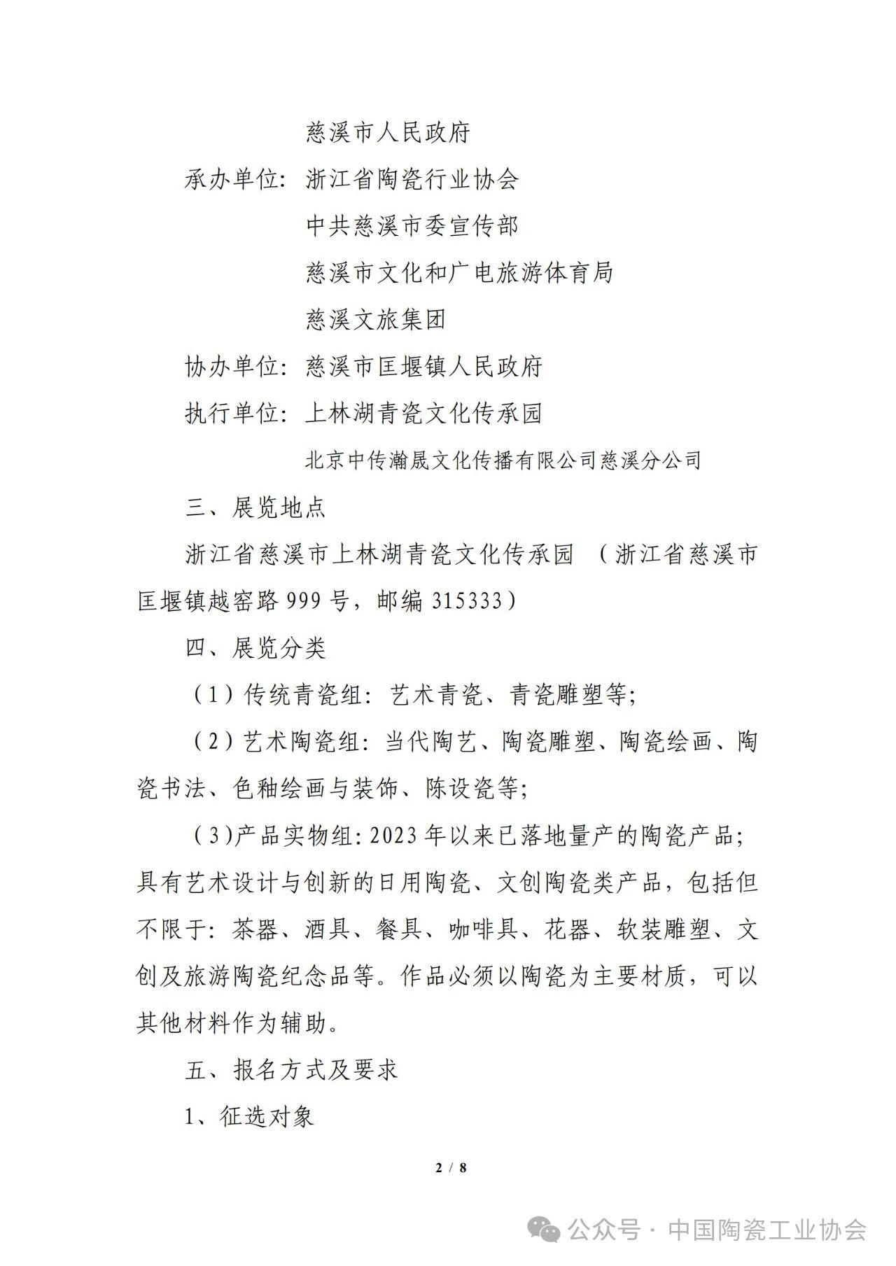 面向全球高校、陶瓷從業(yè)者、陶瓷藝術(shù)家、獨(dú)立設(shè)計(jì)師、陶瓷企業(yè)、陶藝工作室等征集參展作品,以自愿申報(bào)為原則,采取企業(yè)、個(gè)人自行申報(bào)和推薦相結(jié)合的方式征選,無需報(bào)名費(fèi)。