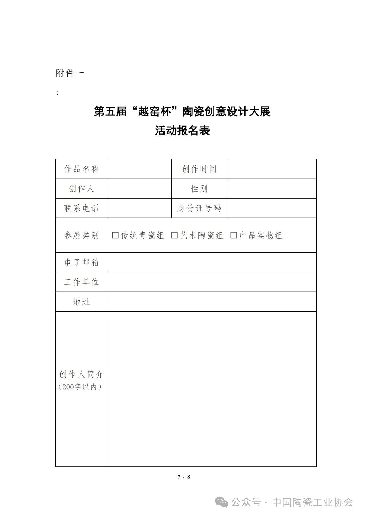 附件1:第五屆“越窯杯”陶瓷創(chuàng)意設(shè)計(jì)大展活動(dòng)報(bào)名表