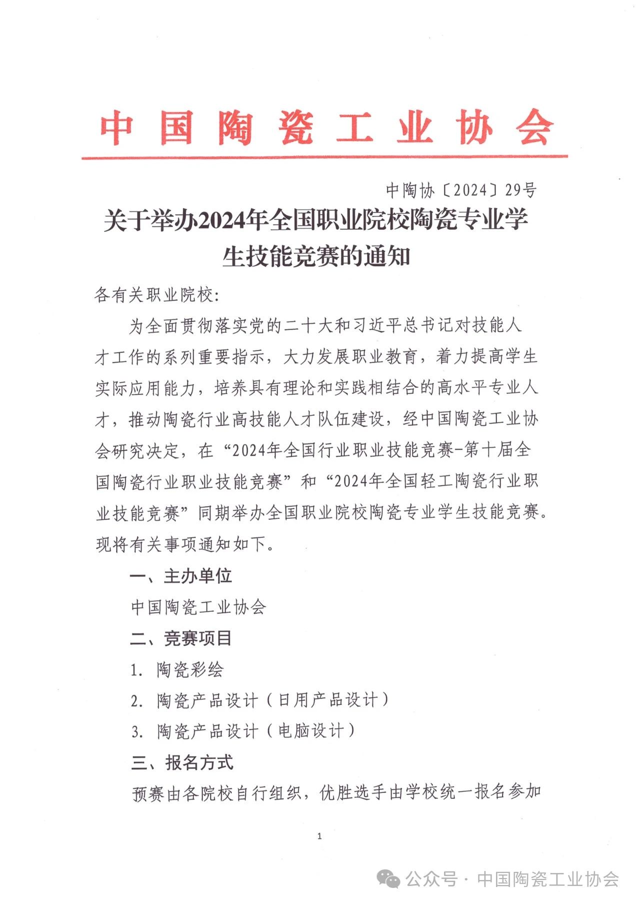 【通知】關(guān)于舉辦2024年全國職業(yè)院校陶瓷專業(yè)學(xué)生技能競賽的通知