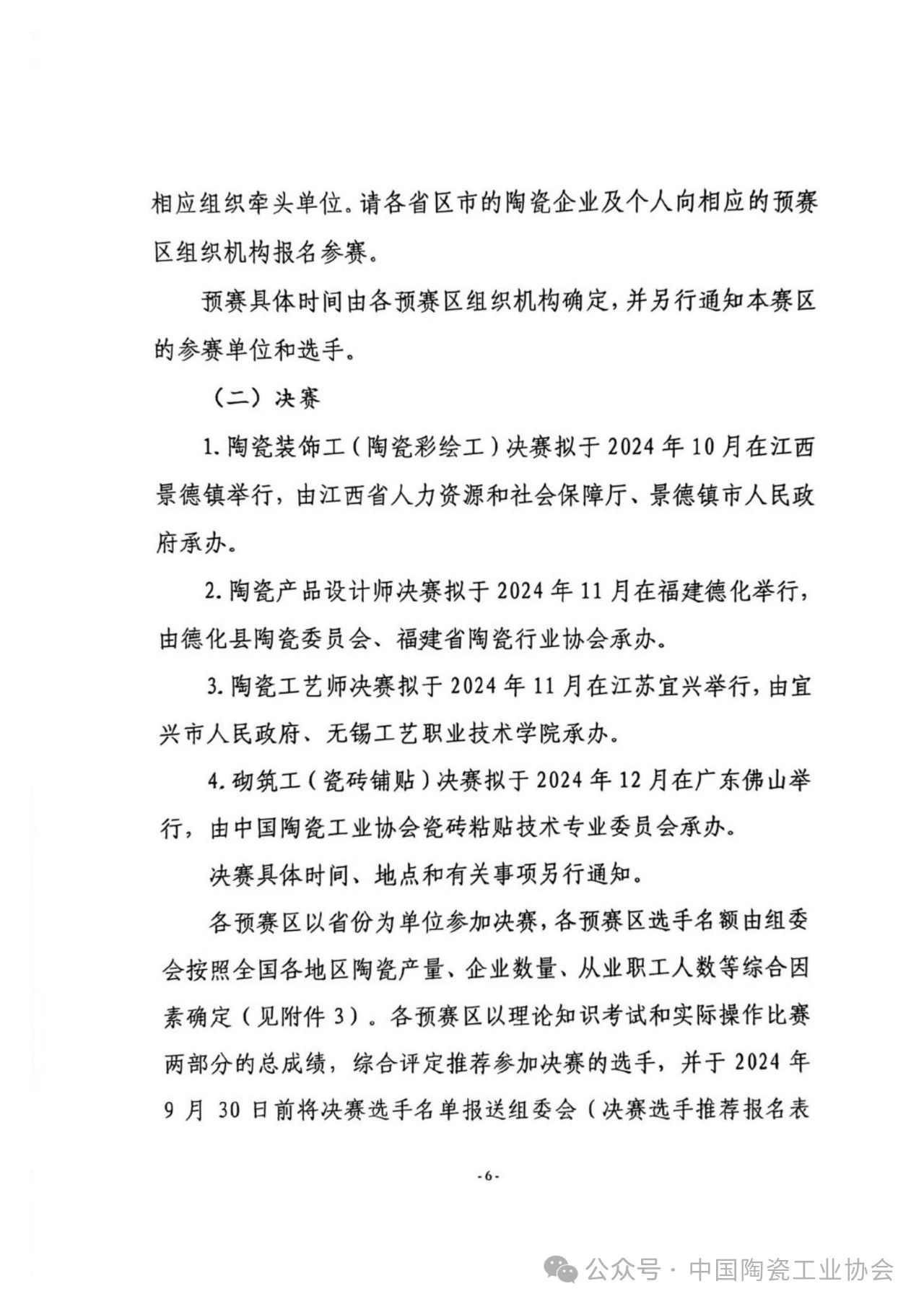 【通知】關(guān)于舉辦2024年全國(guó)行業(yè)職業(yè)技能競(jìng)賽--第十屆全國(guó)陶瓷行業(yè)職業(yè)技能競(jìng)賽的通知