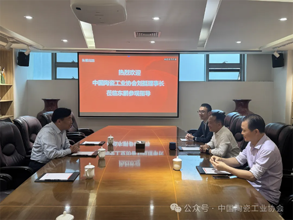 調(diào)研期間,劉挺理事長參觀了東鵬控股總部展廳,詳細了解企業(yè)在綠色智造、產(chǎn)品研發(fā)及數(shù)字化轉(zhuǎn)型方面的成果。作為行業(yè)領軍企業(yè),東鵬控股近年來在低碳技術應用、巖板創(chuàng)新等領域表現(xiàn)突出,為行業(yè)提供了可借鑒經(jīng)驗。