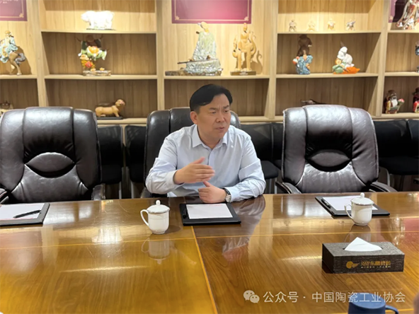 開幕式后,劉挺理事長受邀赴廣東東鵬控股股份有限公司(以下簡稱“東鵬控股”)開展實地調(diào)研,并與東鵬控股董事長何新明進行座談交流。