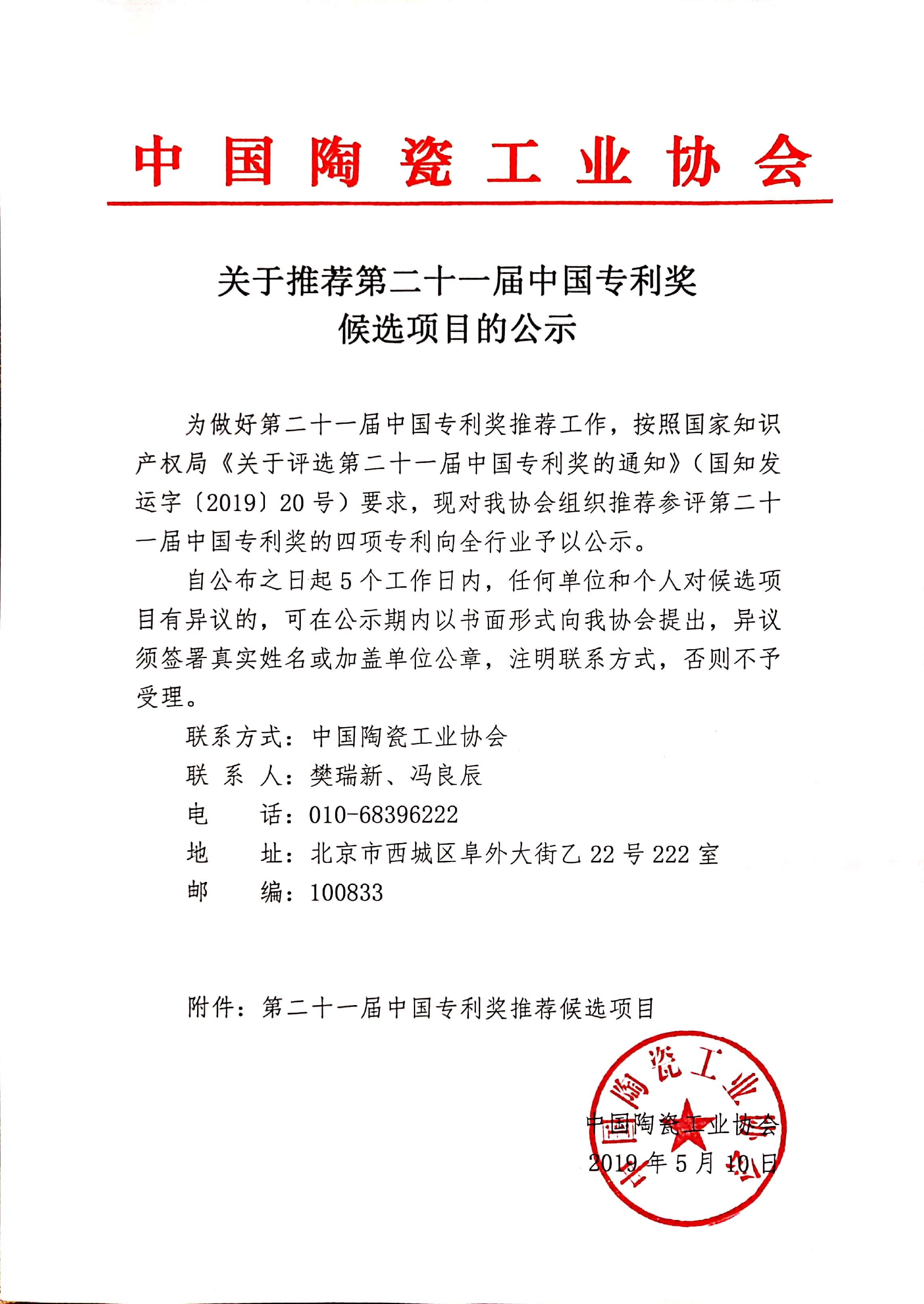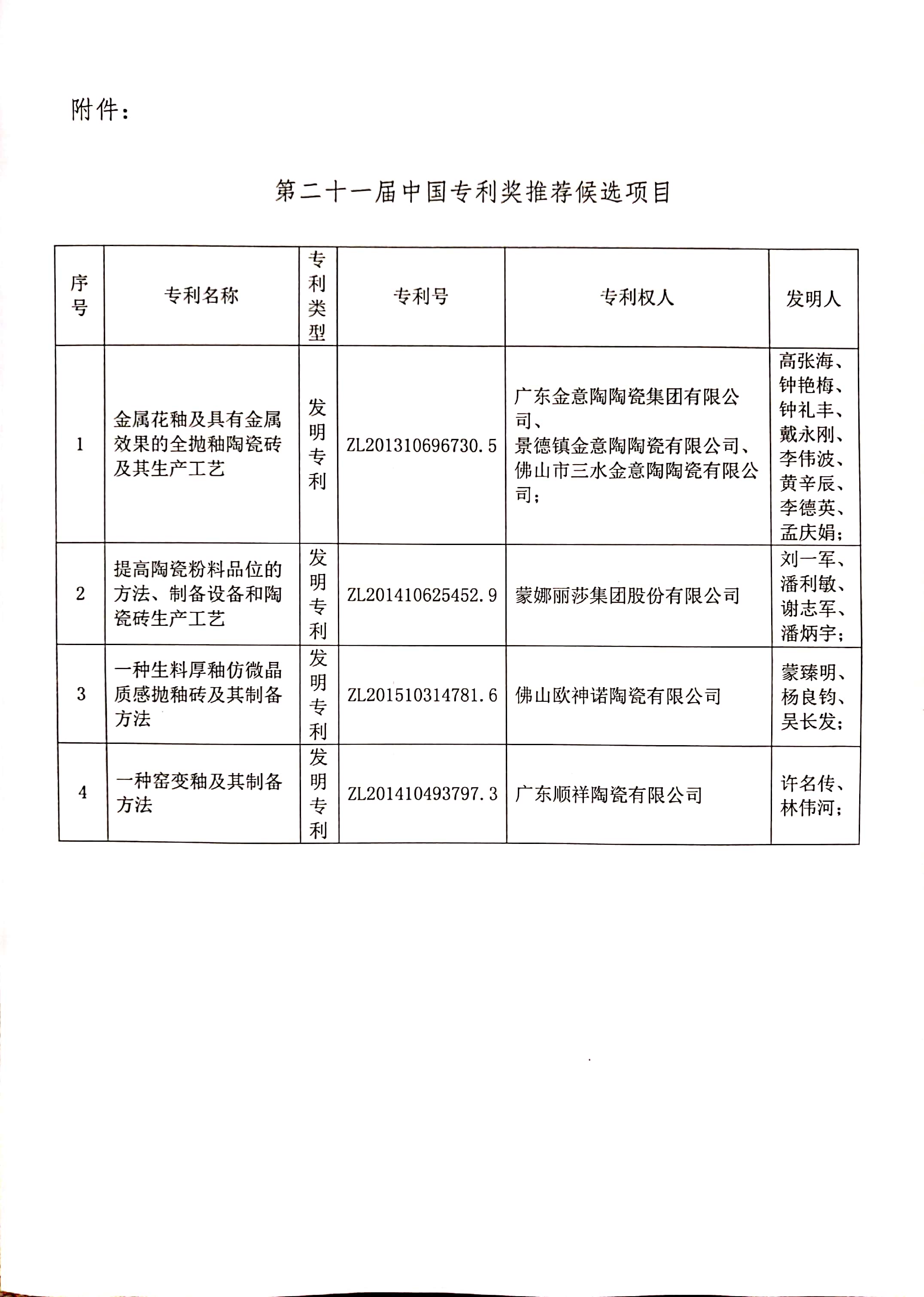 關(guān)于推薦第二十一屆中國(guó)專利獎(jiǎng) 候選項(xiàng)目的公示