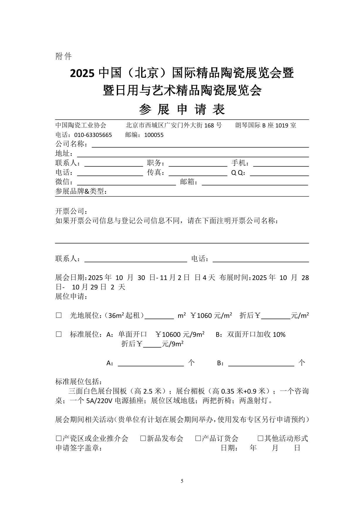 日用與藝術(shù)精品陶瓷展覽會(huì)參展申請(qǐng)表.docx