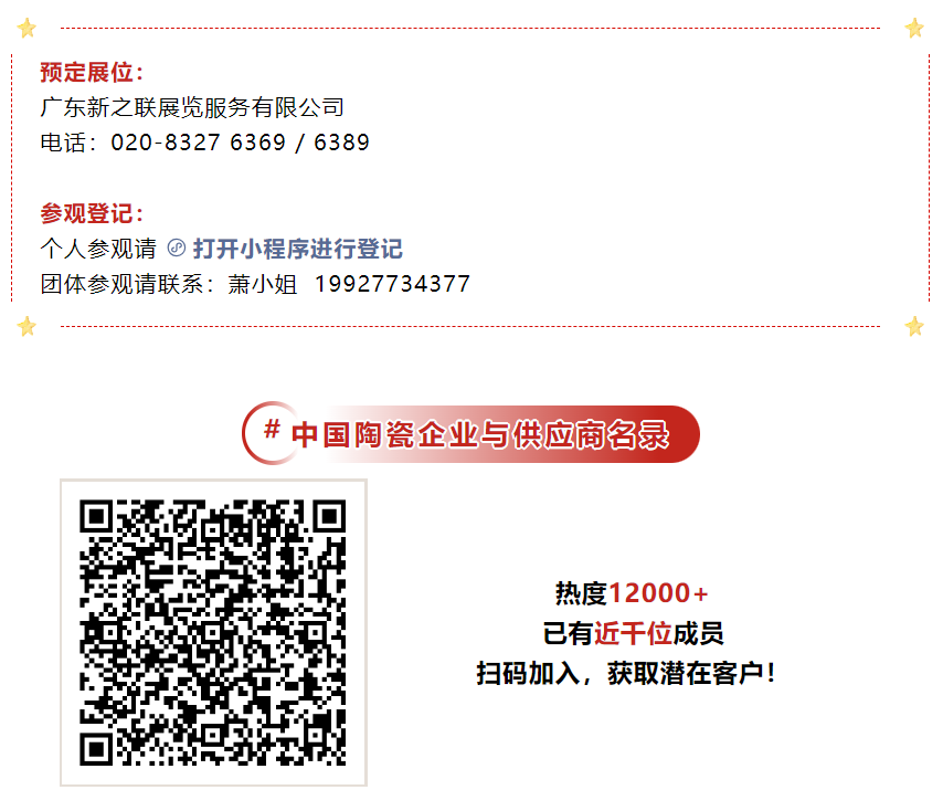 截至5月5日,報(bào)名參展的企業(yè)總數(shù)已超過720家。為了便于參觀采購商們提前了解展商信息和安排參觀行程,主辦方?jīng)Q定提前向全球陶業(yè)人士同步公布首批展商名單。