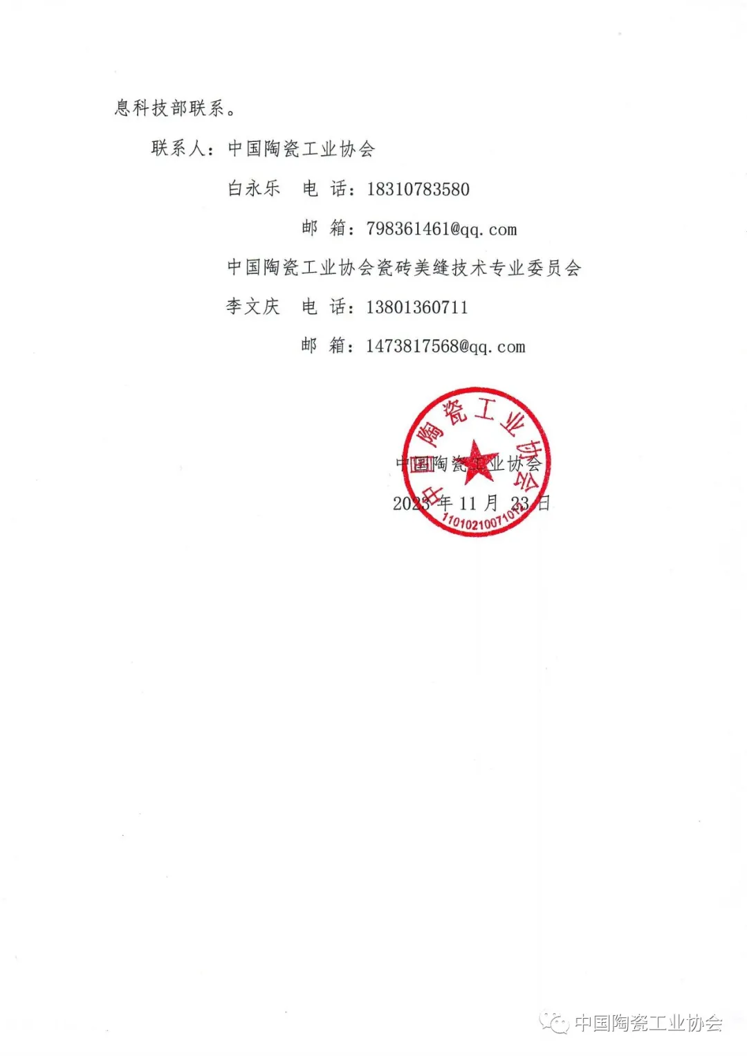 聯(lián)系人:中國陶瓷工業(yè)協(xié)會白永樂?