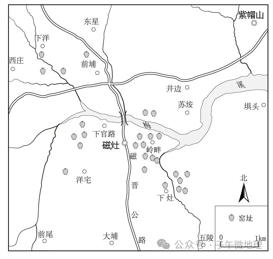 磁灶古窯址分布(曾志彬繪)