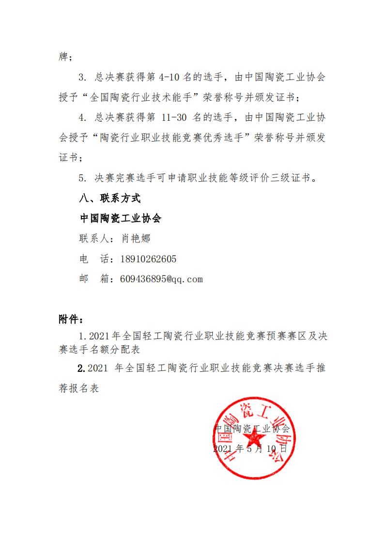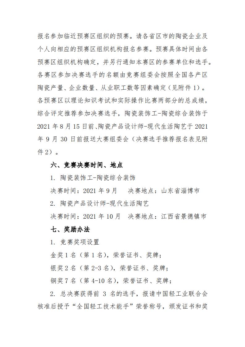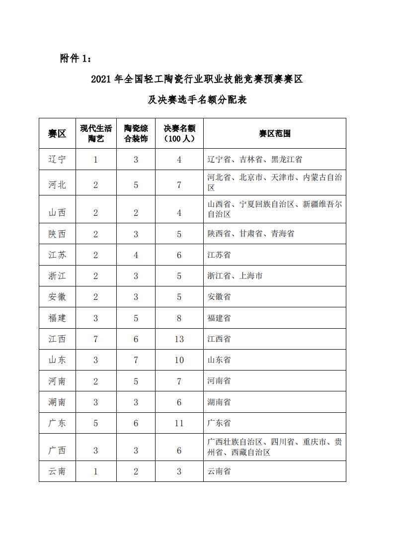 附件:1.2021年全國輕工陶瓷行業(yè)職業(yè)技能競賽預(yù)賽賽區(qū) 及決賽選手名額分配表