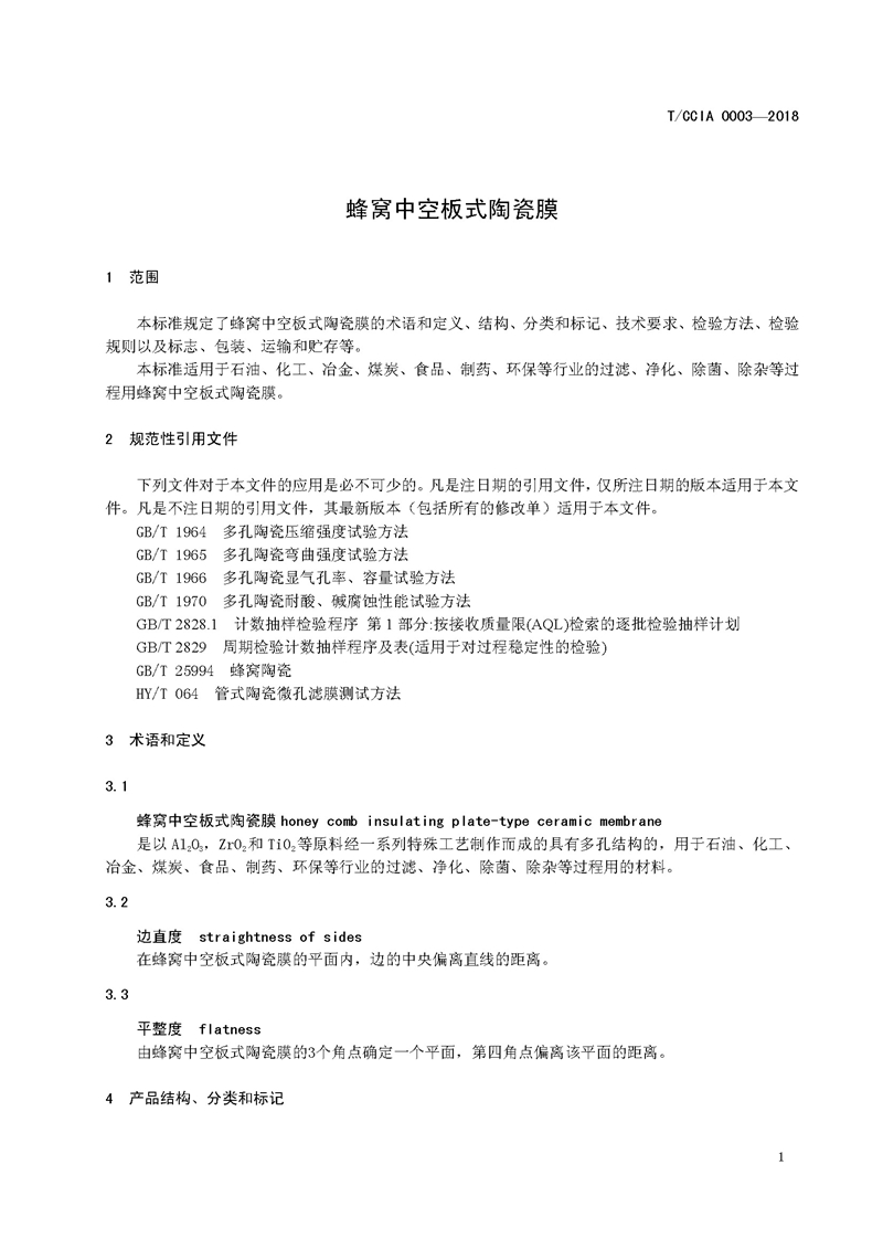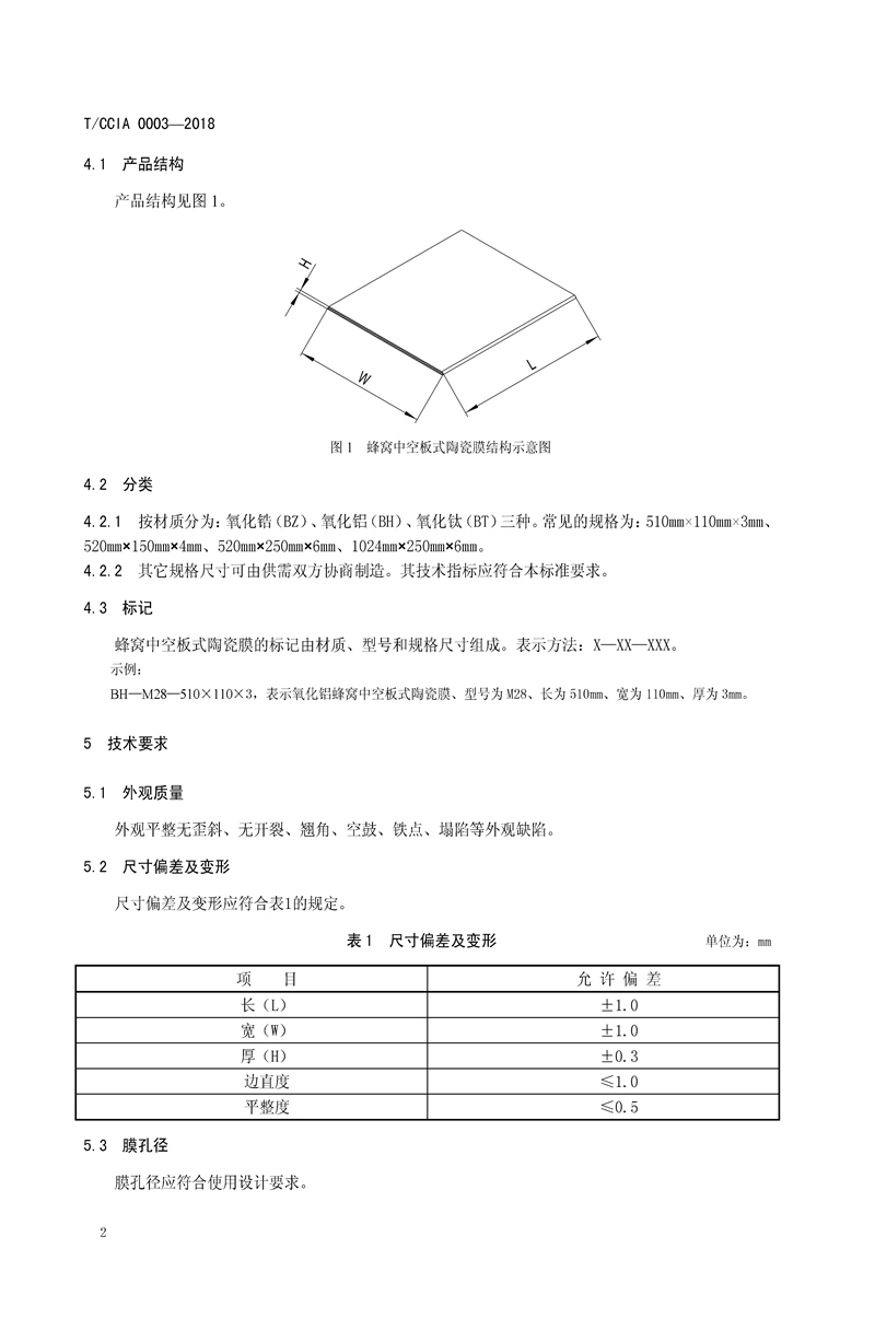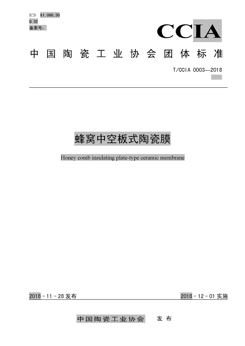 《蜂窩中空板式陶瓷膜》標(biāo)準(zhǔn)內(nèi)容如下: