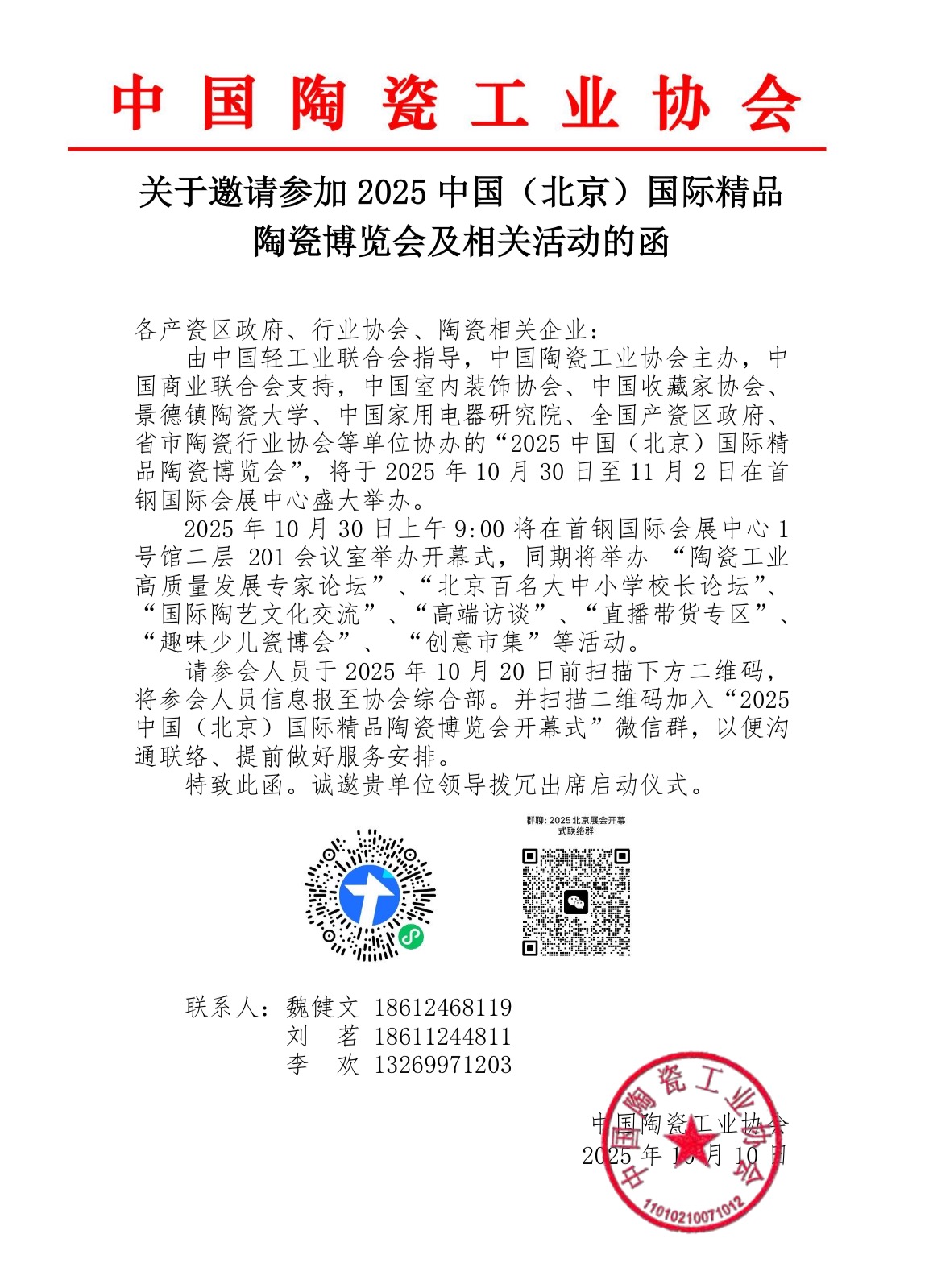 關(guān)于邀請(qǐng)參加2025中國(guó)(北京)國(guó)際精品陶瓷博覽會(huì)及相關(guān)活動(dòng)的函
