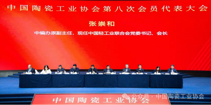 中國(guó)輕工業(yè)聯(lián)合會(huì)副會(huì)長(zhǎng)兼中國(guó)陶瓷工業(yè)協(xié)會(huì)第七屆理事會(huì)會(huì)長(zhǎng)杜同和、副理事長(zhǎng)吳越申、副理事長(zhǎng)浦永祥、中國(guó)輕工業(yè)聯(lián)合會(huì)黨建人事部副主任韓雪梅以及瀘州市市長(zhǎng)余先河、郎酒集團(tuán)總經(jīng)理劉毅等有關(guān)領(lǐng)導(dǎo)和嘉賓出席會(huì)議。中國(guó)陶瓷工業(yè)協(xié)會(huì)第七屆理事會(huì)副理事長(zhǎng)兼秘書(shū)長(zhǎng)侯文全主持會(huì)議。張崇和在講話(huà)中表示,陶瓷行業(yè)是我國(guó)重要的傳統(tǒng)產(chǎn)業(yè)、民生產(chǎn)業(yè),是我國(guó)輕工業(yè)的重要組成部分。六年來(lái),陶瓷行業(yè)穩(wěn)外貿(mào)、提內(nèi)需、謀轉(zhuǎn)型、促發(fā)展,取得了可喜的成績(jī)。2023年,我國(guó)陶瓷行業(yè)規(guī)上企業(yè)3328家,產(chǎn)值超5500億元,利潤(rùn)390億元,出口215億美元,陶瓷磚產(chǎn)量84億平米,衛(wèi)生瓷產(chǎn)量1.6億件,日用及陳設(shè)藝術(shù)瓷產(chǎn)量180億件。我國(guó)已經(jīng)成為全球最大的陶瓷制品生產(chǎn)國(guó)、出口國(guó)和消費(fèi)大國(guó)。張崇和指出,過(guò)去六年,中國(guó)陶瓷工業(yè)協(xié)會(huì)第七屆理事會(huì)協(xié)助政府、引導(dǎo)行業(yè)、服務(wù)企業(yè),充分發(fā)揮橋梁紐帶作用,推動(dòng)行業(yè)穩(wěn)步發(fā)展,做了大量富有成效的工作。一是維護(hù)行業(yè)利益,通過(guò)向政府部門(mén)反映相關(guān)問(wèn)題,維護(hù)了企業(yè)合法權(quán)益;二是搭建會(huì)展平臺(tái),成功舉辦四屆中國(guó)(廣州)國(guó)際陶瓷工業(yè)展和五屆中國(guó)(北京)國(guó)際精品陶瓷展覽會(huì),推動(dòng)了我國(guó)陶瓷工業(yè)擴(kuò)大開(kāi)放、智能化升級(jí);三是推動(dòng)技術(shù)進(jìn)步,配合中國(guó)輕工業(yè)聯(lián)合會(huì)組織鑒定科技成果,制修定國(guó)標(biāo)、行標(biāo)、團(tuán)標(biāo)和清潔生產(chǎn)評(píng)價(jià)標(biāo)準(zhǔn),為行業(yè)高質(zhì)量發(fā)展奠定了標(biāo)準(zhǔn)基礎(chǔ);四是培育產(chǎn)業(yè)集群,目前,中國(guó)輕工業(yè)聯(lián)合會(huì)、中國(guó)陶瓷工業(yè)協(xié)會(huì)與地方政府共建產(chǎn)業(yè)集群22個(gè),產(chǎn)業(yè)集群質(zhì)量得到優(yōu)化,促進(jìn)了地方產(chǎn)業(yè)經(jīng)濟(jì)發(fā)展,增強(qiáng)了區(qū)域特色競(jìng)爭(zhēng)優(yōu)勢(shì);五是強(qiáng)化人才培養(yǎng),為陶瓷行業(yè)發(fā)展提供了有利的人才支撐,帶動(dòng)了4萬(wàn)多人就業(yè)、創(chuàng)業(yè);六是履行社會(huì)責(zé)任,組織企業(yè)參與脫貧攻堅(jiān)等,彰顯了行業(yè)擔(dān)當(dāng),強(qiáng)化了社會(huì)責(zé)任。張崇和對(duì)中國(guó)陶瓷工業(yè)協(xié)會(huì)今后的工作提出幾點(diǎn)希望:——強(qiáng)化黨建統(tǒng)領(lǐng)發(fā)展。要落實(shí)中央要求,全面加強(qiáng)黨的領(lǐng)導(dǎo),扎實(shí)做好黨建工作,發(fā)揮黨組織戰(zhàn)斗堡壘作用,發(fā)揮黨員先鋒模范作用;要落實(shí)中央社工部要求,把握新時(shí)代協(xié)會(huì)黨建工作特點(diǎn),與時(shí)俱進(jìn),開(kāi)拓創(chuàng)新,不斷強(qiáng)化服務(wù)國(guó)家、服務(wù)社會(huì)、服務(wù)群眾、服務(wù)行業(yè)的功能;要鞏固巡視整改成果,堅(jiān)持依法辦會(huì)、從嚴(yán)治會(huì),持之以恒,以黨建為統(tǒng)領(lǐng),全面提升協(xié)會(huì)的現(xiàn)代治理能力,努力把協(xié)會(huì)建成陶瓷行業(yè)高質(zhì)量發(fā)展的引領(lǐng)者?!G色低碳引領(lǐng)發(fā)展。要引領(lǐng)行業(yè),推進(jìn)碳達(dá)峰、碳中和,推動(dòng)節(jié)能降耗、減污降碳,建設(shè)高水平綠色制造體系;要鼓勵(lì)企業(yè),采用低溫快燒短流程技術(shù),應(yīng)用坯體減薄干法技術(shù),優(yōu)化用能結(jié)構(gòu),高效節(jié)能清潔生產(chǎn),走綠色低碳可持續(xù)發(fā)展之路?!沦|(zhì)生產(chǎn)促進(jìn)發(fā)展。要號(hào)召行業(yè)企業(yè),積極響應(yīng)、認(rèn)真落實(shí)黨的二十屆三中全會(huì)對(duì)“健全因地制宜發(fā)展新質(zhì)生產(chǎn)力體制機(jī)制”作出的全面部署;要引導(dǎo)行業(yè),把握科技創(chuàng)新核心要素,加大研發(fā)投入,創(chuàng)造更多原創(chuàng)性成果,用到產(chǎn)業(yè)鏈上,轉(zhuǎn)化為生產(chǎn)力;要鼓勵(lì)企業(yè),采用新工藝、新材料、新裝備,生產(chǎn)品質(zhì)精良、花色優(yōu)美、品牌響亮的陶瓷制品,把新質(zhì)生產(chǎn)力體現(xiàn)到產(chǎn)品上、落實(shí)到服務(wù)美好生活中?!罱ㄆ脚_(tái)開(kāi)放發(fā)展。要引領(lǐng)行業(yè),鞏固國(guó)際市場(chǎng),創(chuàng)新對(duì)外投資,促進(jìn)國(guó)際產(chǎn)能合作;要辦好中國(guó)(廣州)國(guó)際陶瓷工業(yè)展,發(fā)揮平臺(tái)優(yōu)勢(shì),展示前沿技術(shù),展覽尖端產(chǎn)品,促進(jìn)國(guó)際交流與合作。以更加開(kāi)放的姿態(tài),做大做強(qiáng)中國(guó)陶瓷產(chǎn)業(yè)。——人才為本保障發(fā)展。要落實(shí)人才強(qiáng)國(guó)戰(zhàn)略的要求,結(jié)合行業(yè)特點(diǎn),加強(qiáng)技能人才隊(duì)伍建設(shè);要繼續(xù)做好職業(yè)技能培訓(xùn)評(píng)價(jià),辦好技能競(jìng)賽,全面提升技能人才的理論水平和