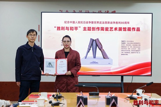 現場舉行了館藏證書頒發(fā)儀式。為部分捐贈作品的創(chuàng)作者頒發(fā)館藏證書,這些承載著和平愿景與藝術價值的陶瓷作品,將被紀念館永久收藏,成為傳承歷史記憶、弘揚民族精神的重要載體。